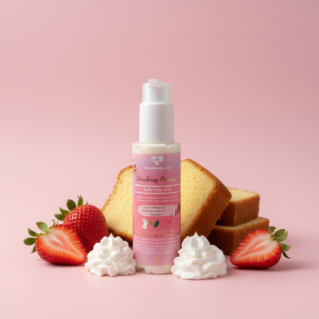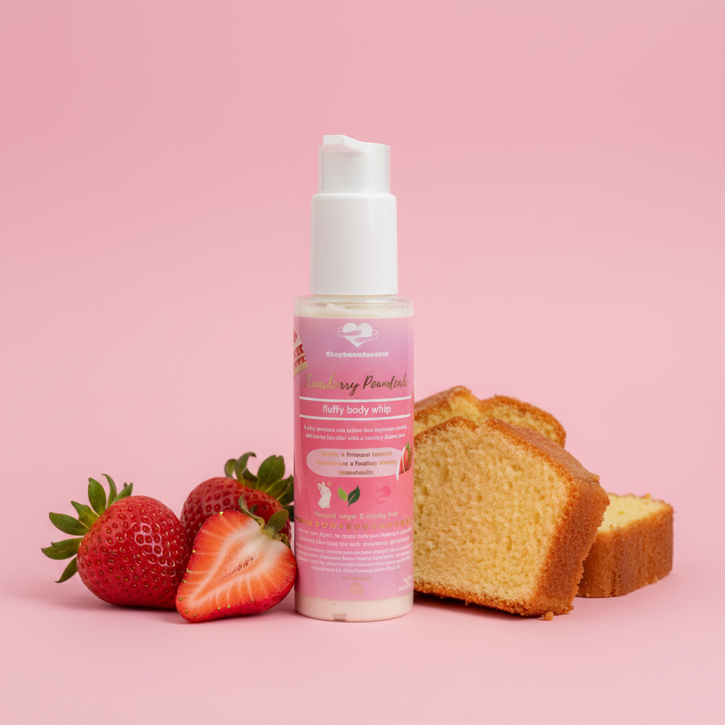 A whipped, bakery sweet dream for your skin. Juicy strawberries blended with warm vanilla cake and creamy sweetness. Cozy, feminine, and addictive.